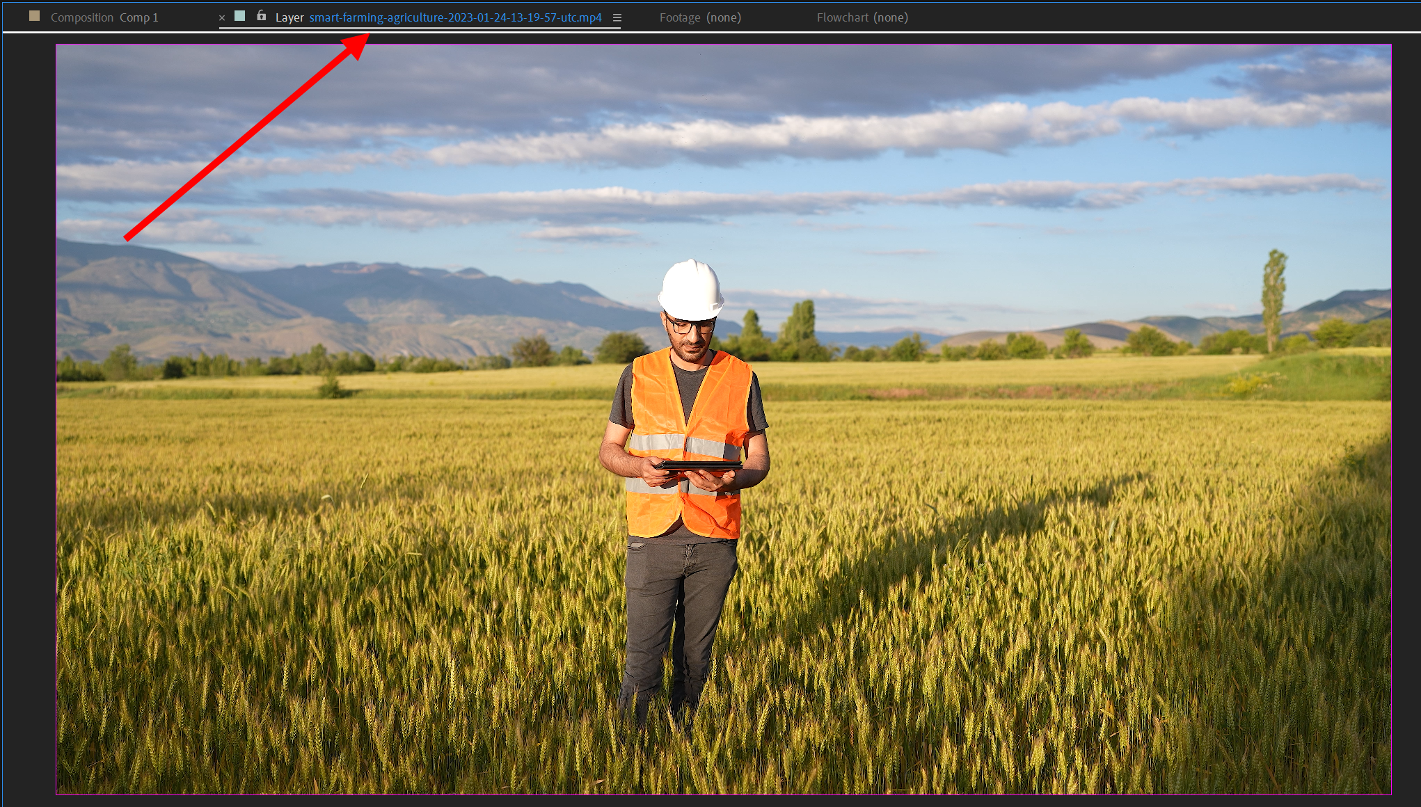 2)컴포지션에 동영상 레이어를 추가하고 특정 프레임을 선택합니다.