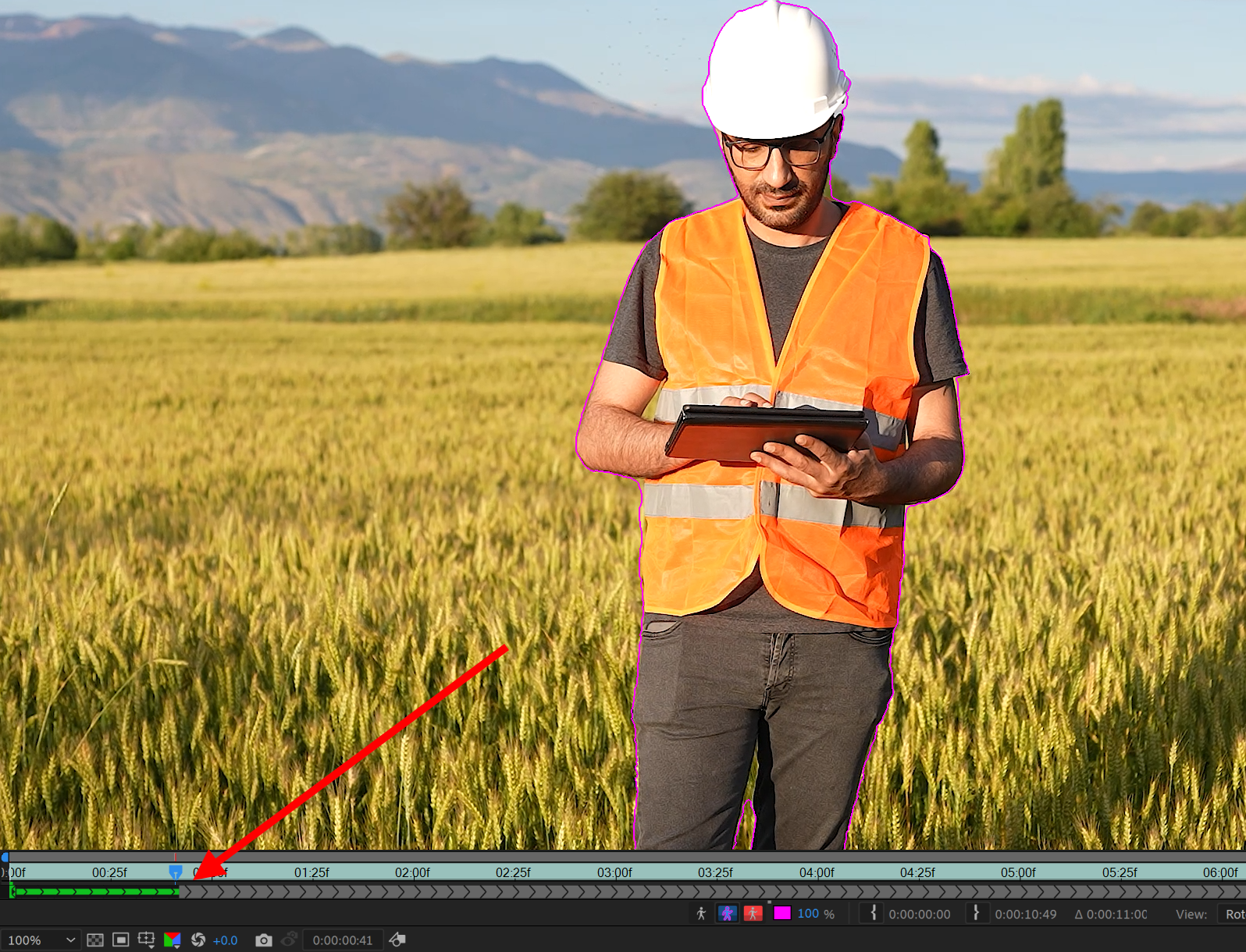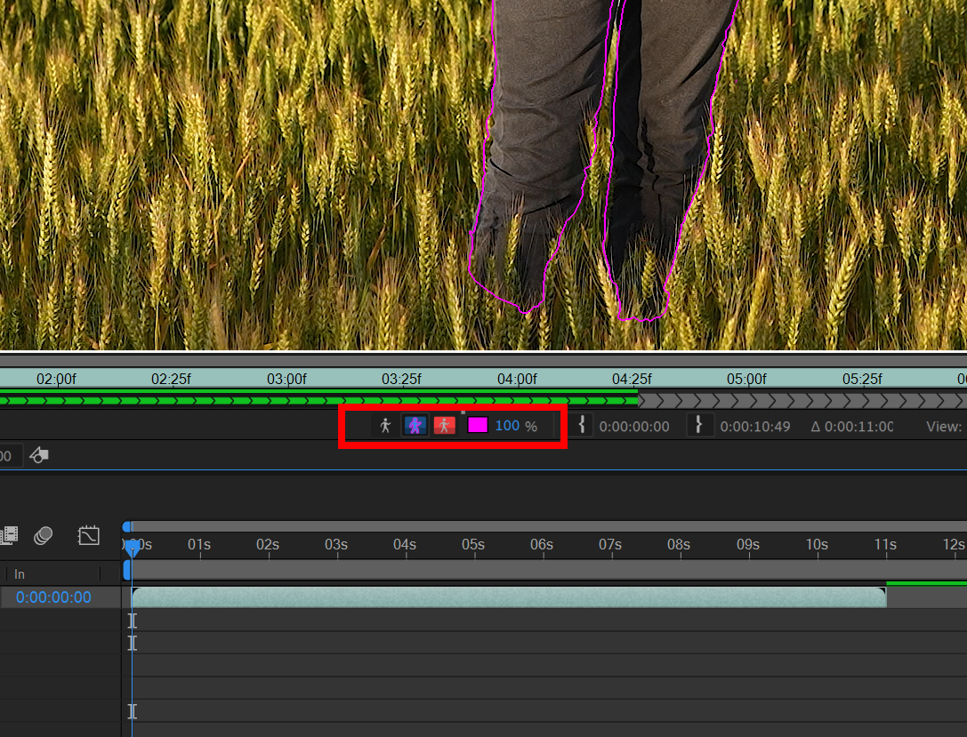 6)타임라인에서 재생하면 현재 프레임부터 이후 모든 프레임에 대하여 로토브러시 계산을 진행합니다.