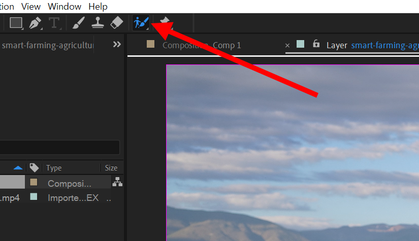3)상단의 roto brush 도구를 활성화합니다.