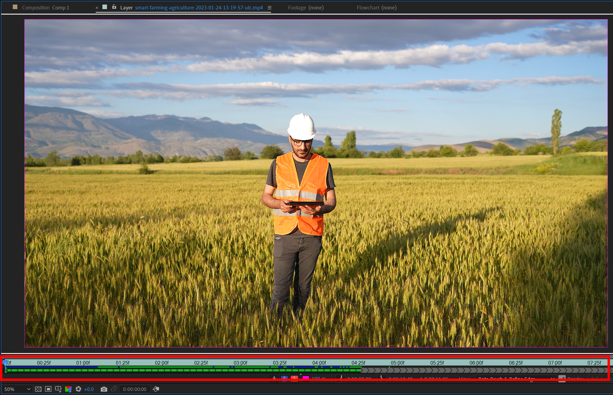 8)로토브러시 계산이 완료되면 컴포지션을 선택하여 확인합니다.