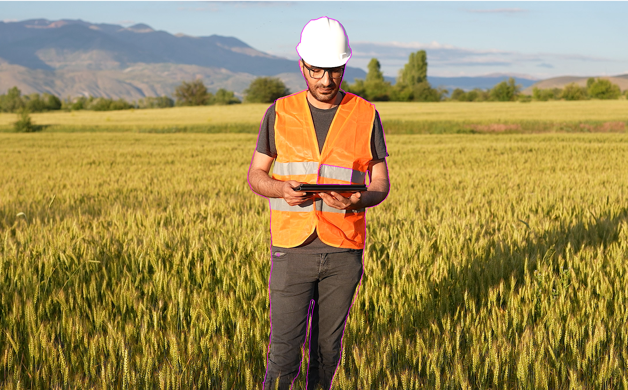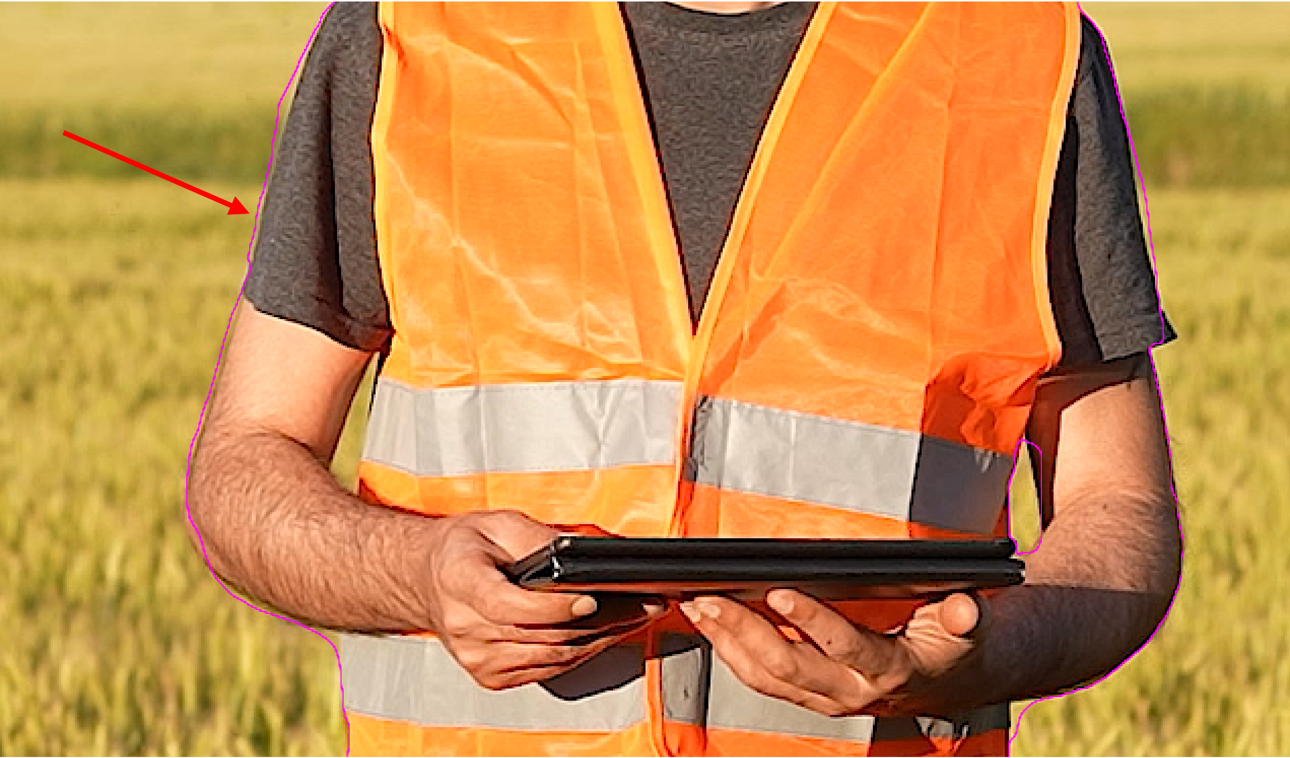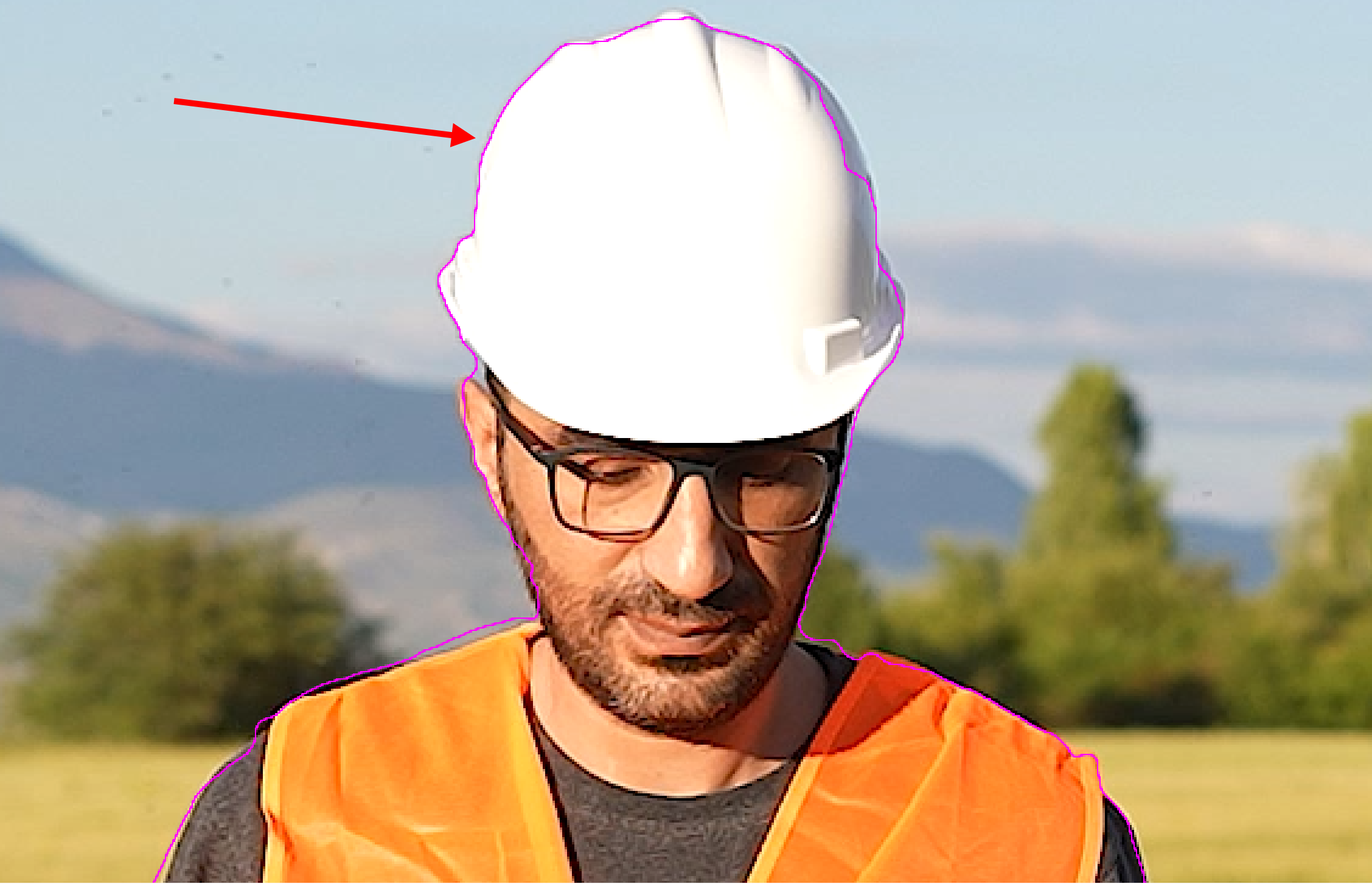 4)동영상 레이어를 선택하고 이미지의 인물 위에서 클릭 드래그하여 영역을 설정하면 전경요소(인물)와 배경의 분할 경계를 설정합니다