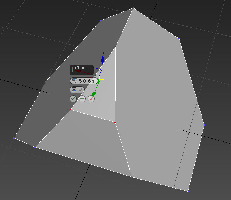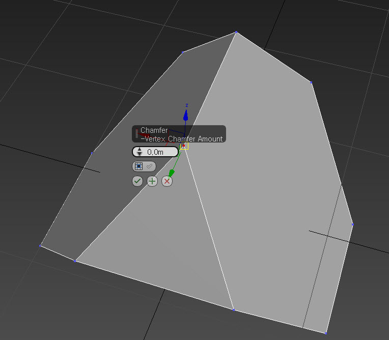 3)폴리곤 오브젝트로 변환하고 버텍스를 선택한후 chamfer를 사용해서 바위의 침식을 표현합니다.