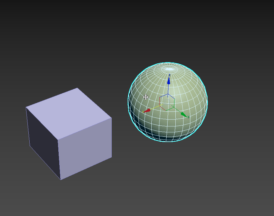 5)박스 오브젝트를 회전시켜도 스피어 오브젝트는 항상 박스 오브젝트의 로컬축을 표시합니다.