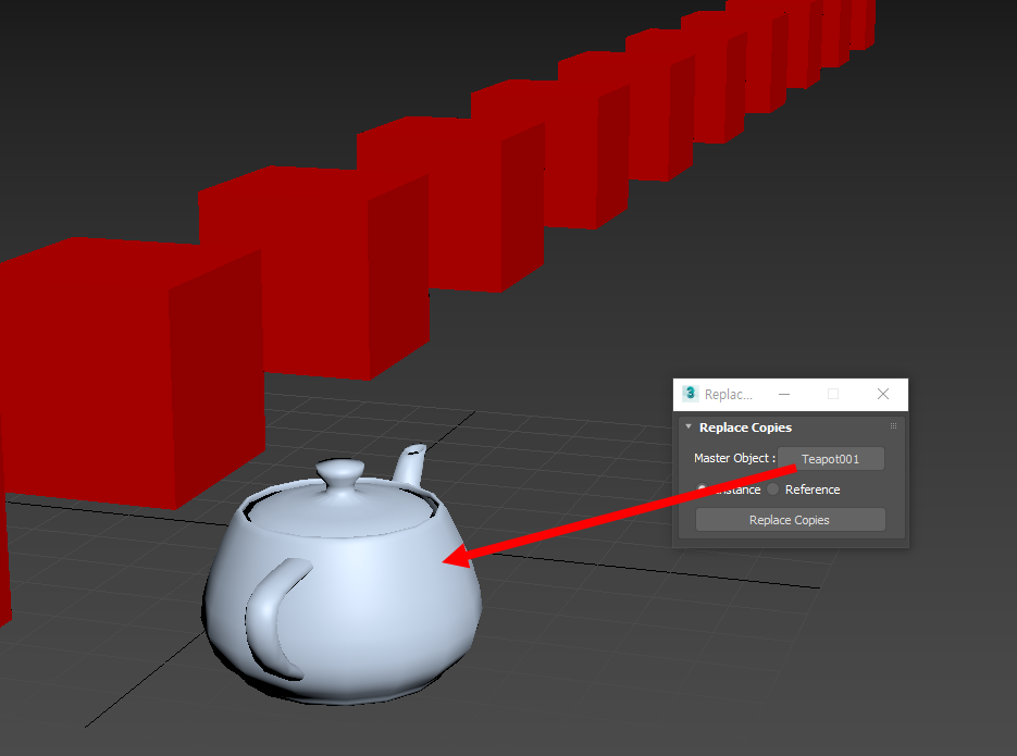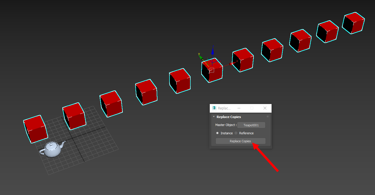 5)모든 박스 오브젝트를 선택하고 replace copies를 클릭합니다.