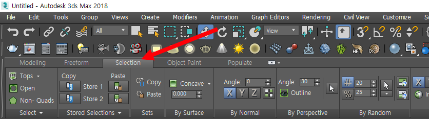 4)상단의 ribbon에서 selection 탭을 선택합니다.