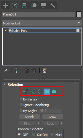3)오브젝트의 Sub-Object Selection에서 폴리곤을 활성화시킵니다.
