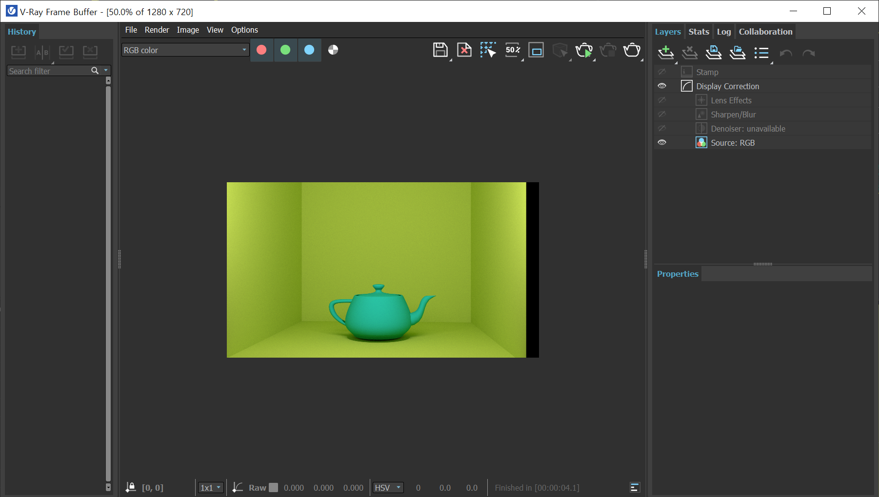 4)렌더링 이미지를 브이레이 프레임 버퍼(v-ray frame buffer) 윈도우에서 표시하는것을 확인할수있습니다.