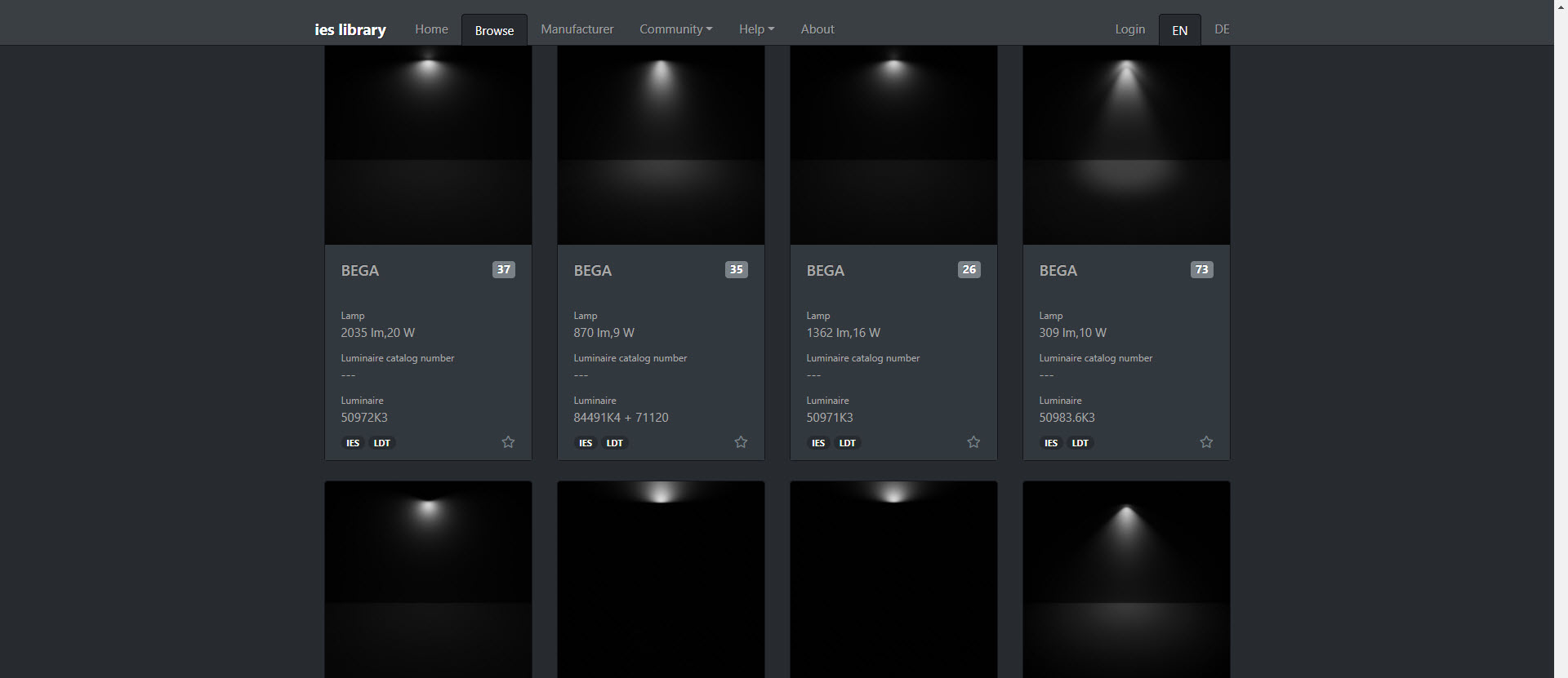 1)아래 웹사이트에서 무료로 제공하는 ies 파일을 사용할수있습니다.