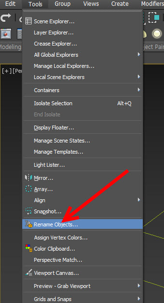 2)상단의 tools 메뉴에서 rename objects를 선택합니다.
