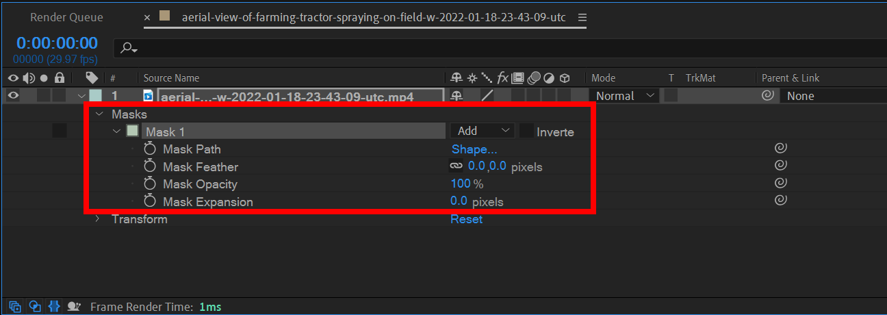 에프터이펙트(after effect)에서 모양(shape)을 마스킹 영역으로 사용하기