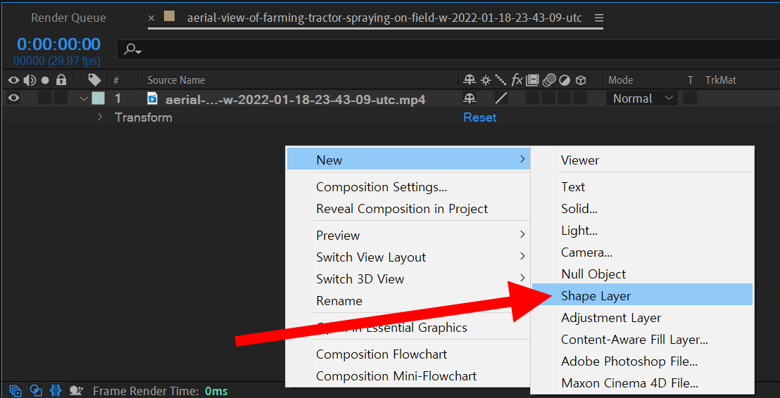4)컴포지션에서 새로운 shape layer를 생성합니다.