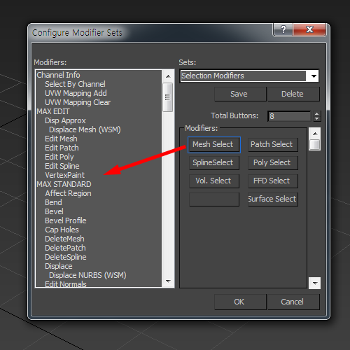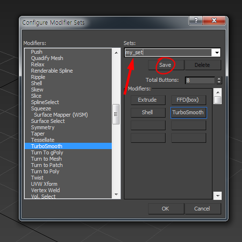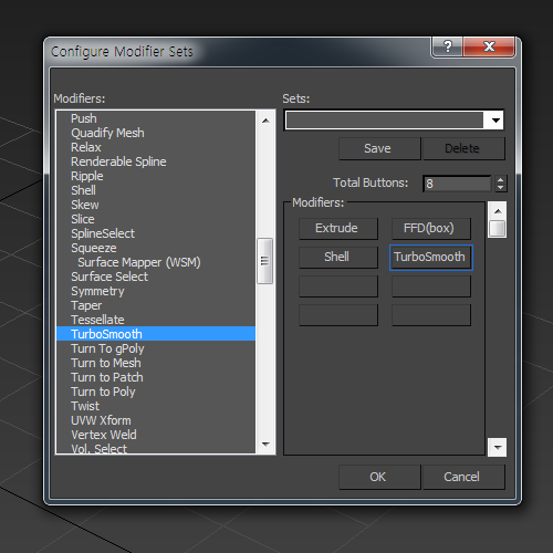 3D 맥스에서 사용자 수정자 세트(modifier sets) 만들기