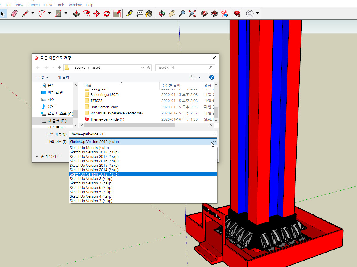 4)예에서 2013 버전의 스케치업 파일로 저장하였습니다.