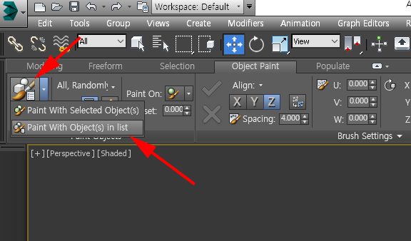 3D맥스에서 오브젝트 페인트 툴(object paint tool) 사용하기