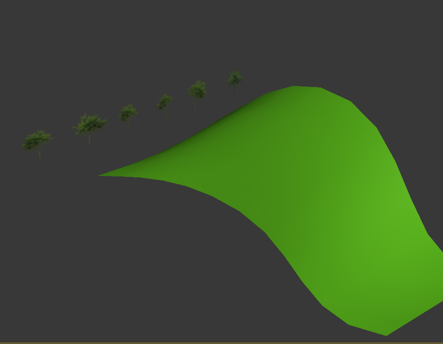 8)선택한 오브젝트(지형) 위에서 마우스를 클릭(또는 클릭 드래그)하면 나무 오브젝트를 배치합니다.