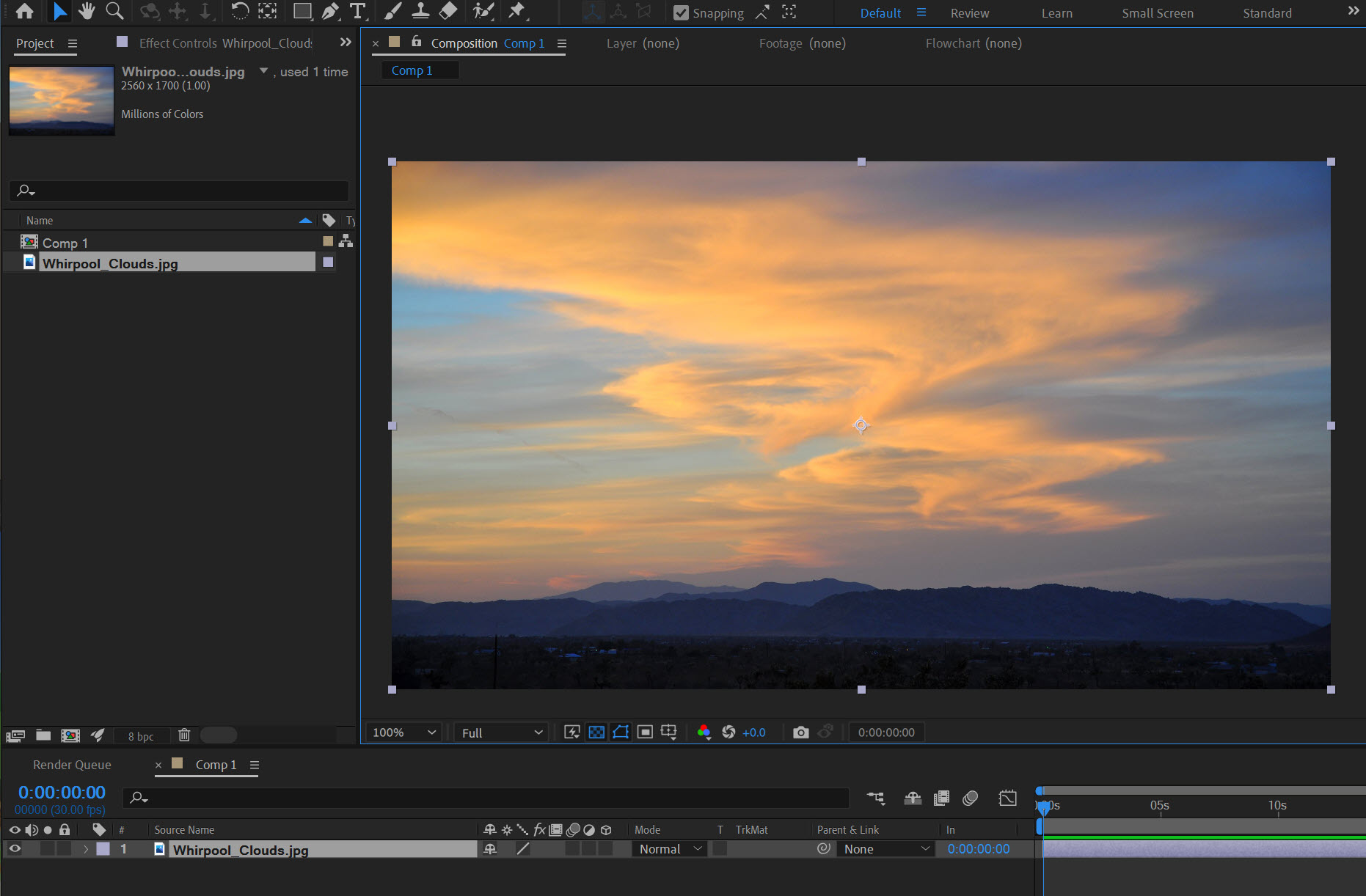 1)새로운 컴포지션을 생성하고 배경 이미지를 추가합니다.