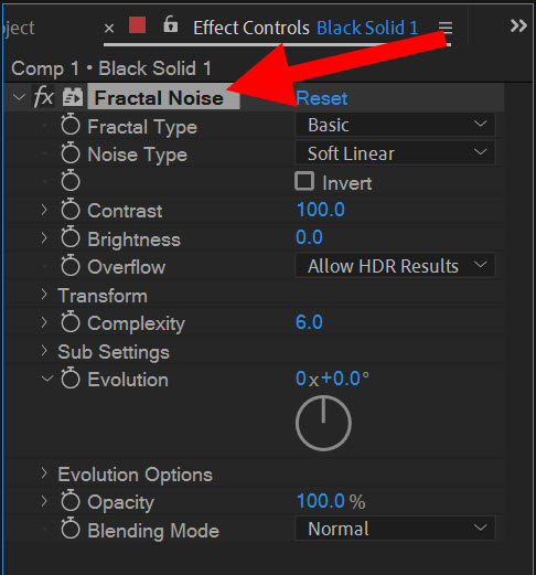 4)fractal noise 이펙트를 추가합니다.