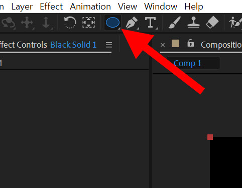 3)상단에서 shape tool을 선택하고 솔리드 레이어에 마스킹 영역을 설정합니다.