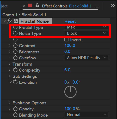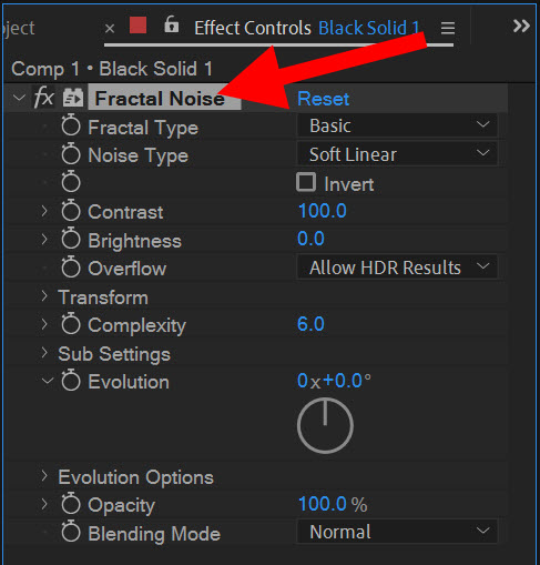 2)솔리드 레이어에 fractal noise 이펙트를 추가합니다.