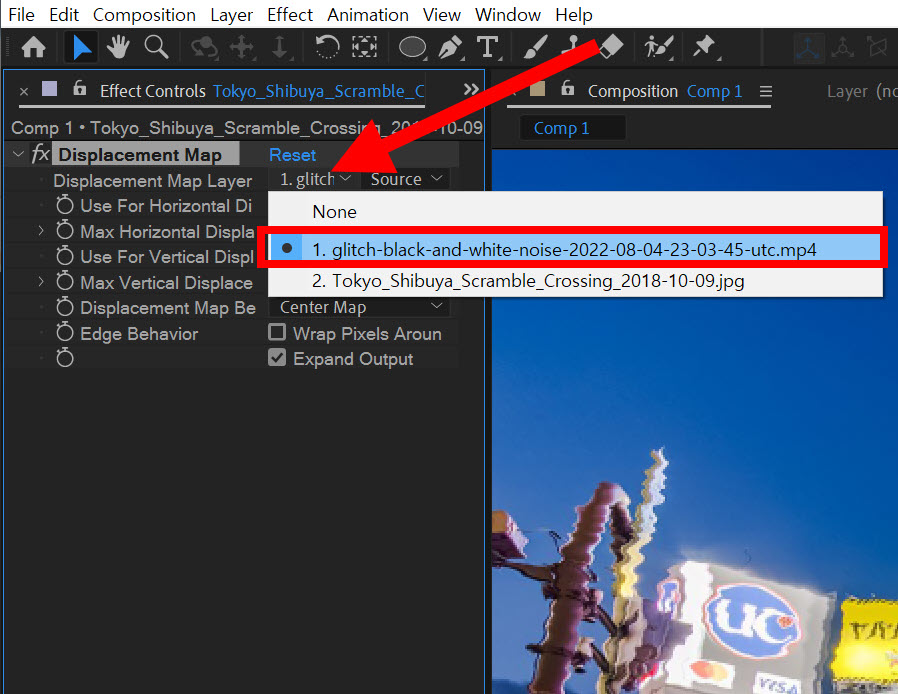 에프터이펙트에서 displacement map 이펙트를 사용하여 글리치 효과(glitch effect) 만들기