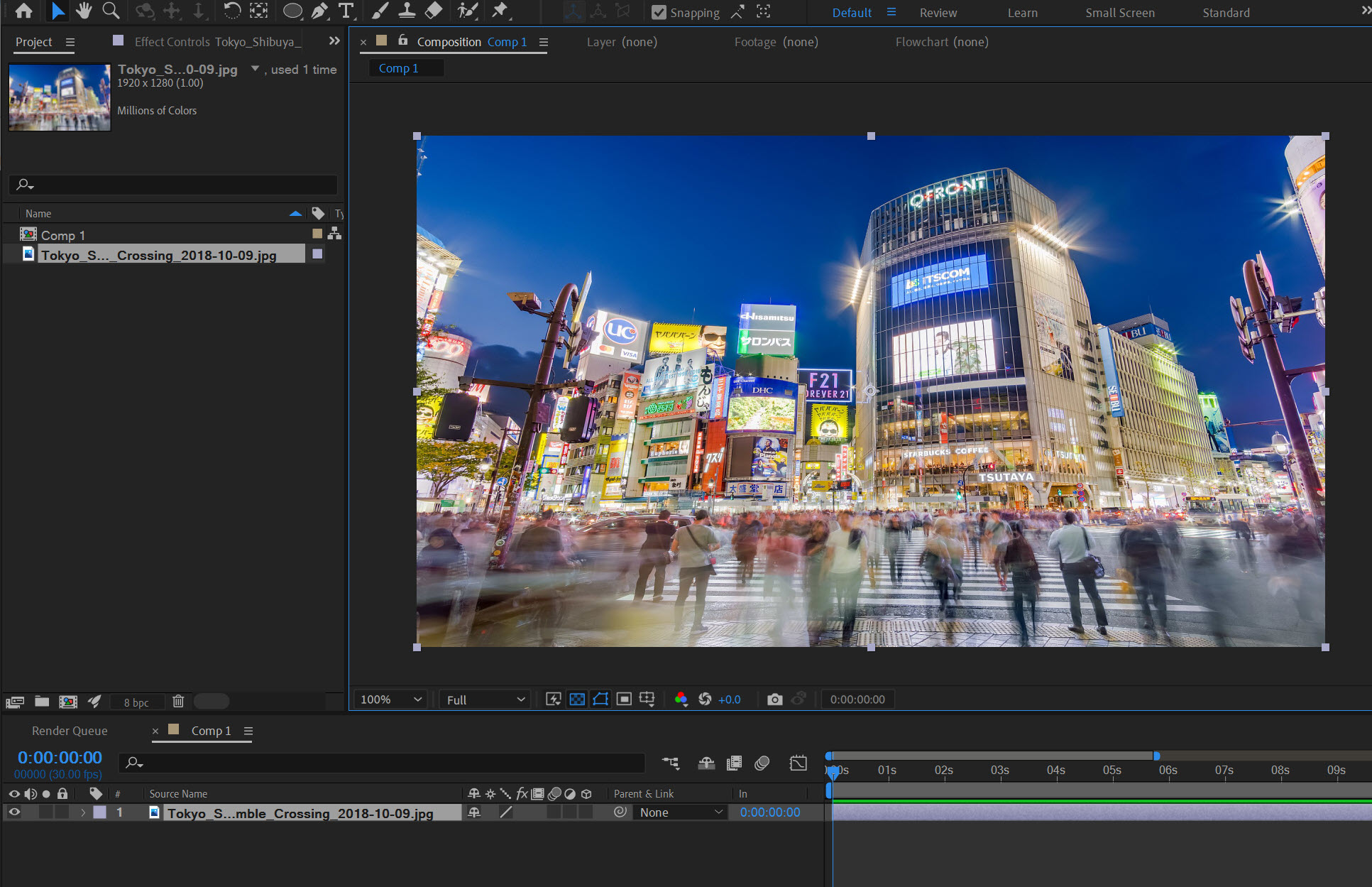 1)새로운 컴포지션을 생성하고 배경 이미지를 추가합니다