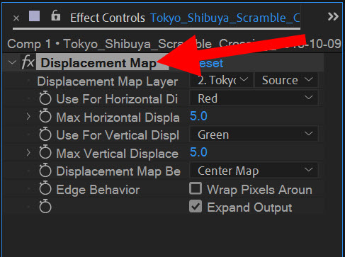 5)displacement map 이펙트를 추가합니다.