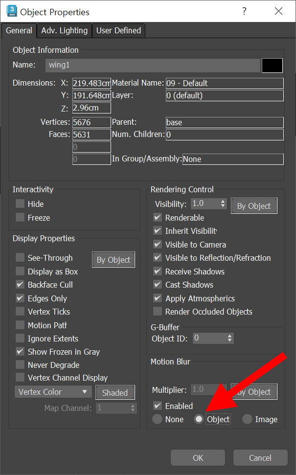 4)motion blur의 enabled에 체크하고 object를 선택하고 확인합니다.