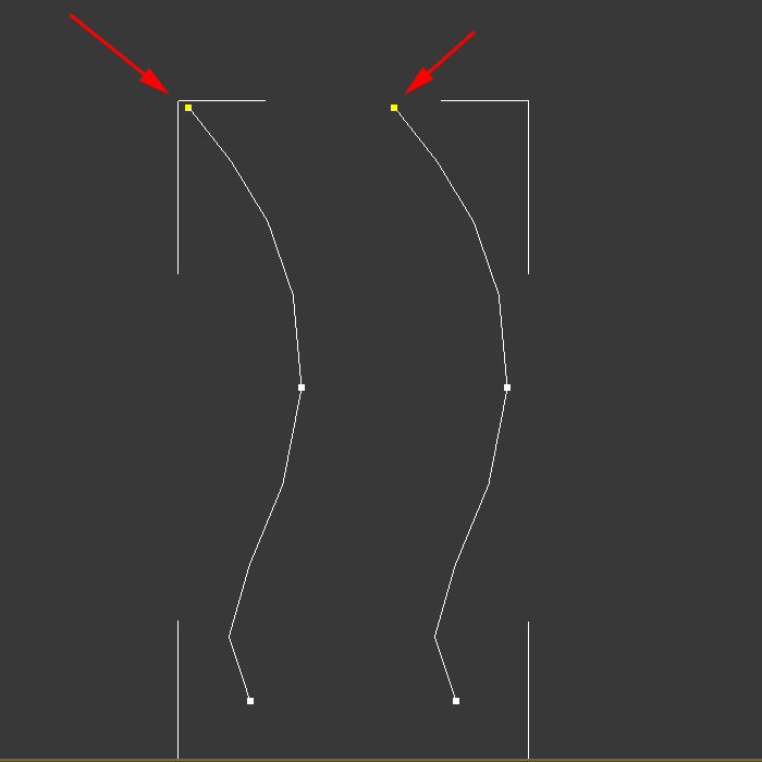 3)두 스플라인의 시작점(first vertex)의 위치를 아래와 같이 설정합니다(버텍스를 선택하고 make first를 클릭하면 시작점으로 설정합니다)