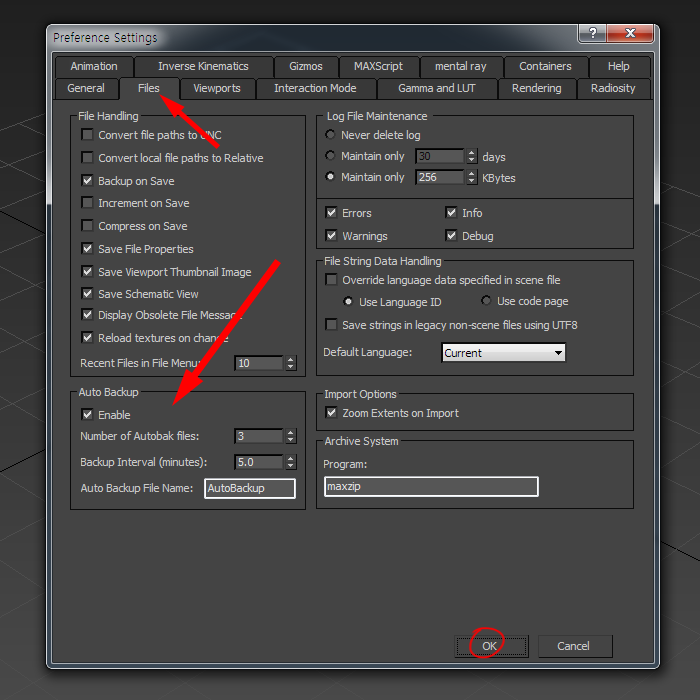 3D맥스에서 오토 백업 설정하기(auto backup)