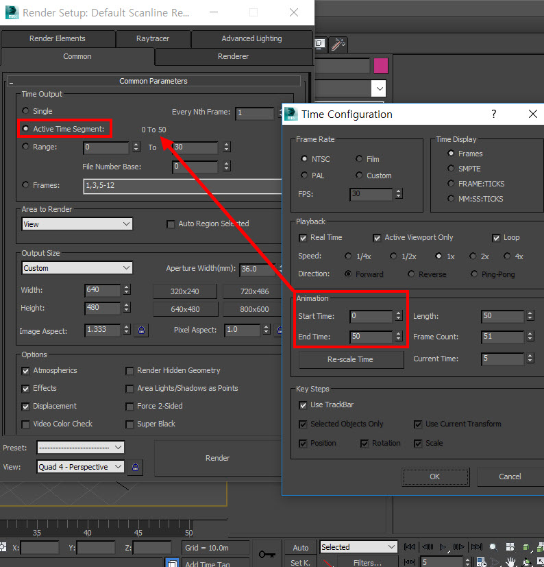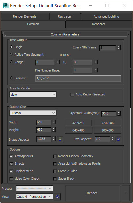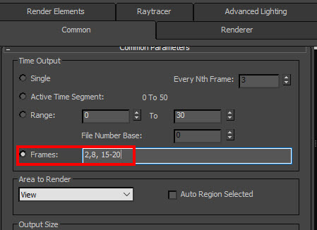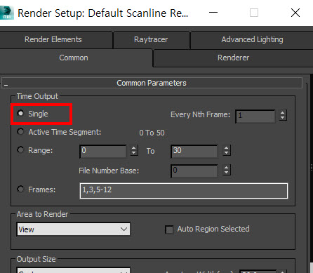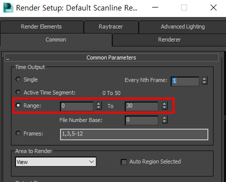 3D 맥스에서 사용자 지정 프레임 렌더링하기(single, active time segment, range, frames)