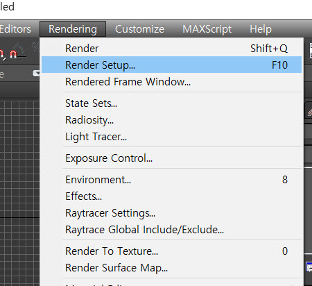 1)상단의 rendering 메뉴에서 render setup으로 이동합니다(단축키 f10)
