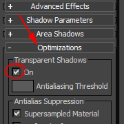 5)area shadows는 그림자에서 재질의 불투명도(opacity)를 반영하지않는것을 확인할수있습니다.