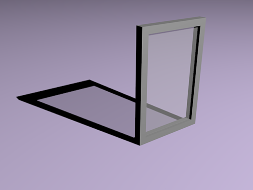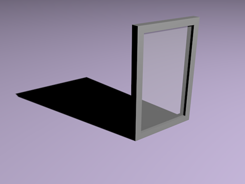 1)조명에 의한 그림자를 표현하기 위해 평면 오브젝트(plane1)와 창문 프레임 오브젝트(box)를 추가합니다. 창문 프레임의 중앙에는 불투명도(opacity)의 수치를 낮춘 투명한 재질을 적용한 유리창 오브젝트(plane2)를 위치시킵니다.