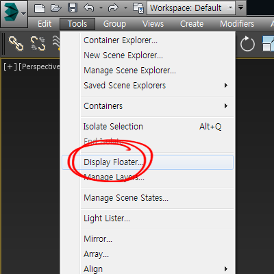 4)상단의 tools 메뉴에서 display floater로 이동합니다.