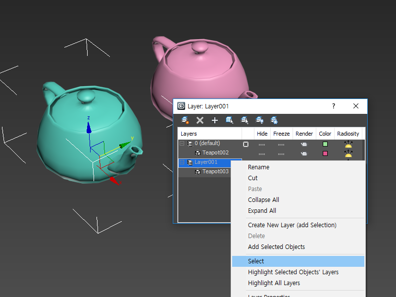 3D맥스에서 레이어 관리(manage layer) 사용법