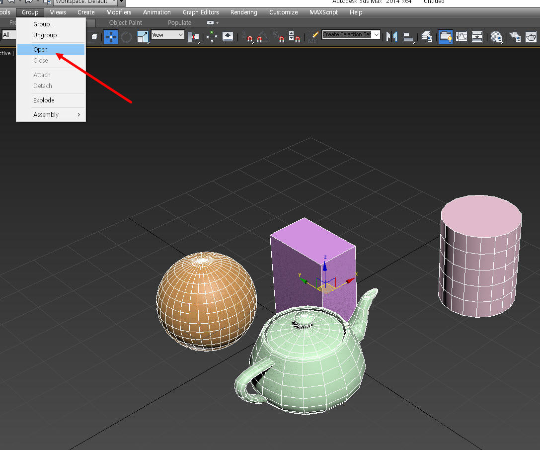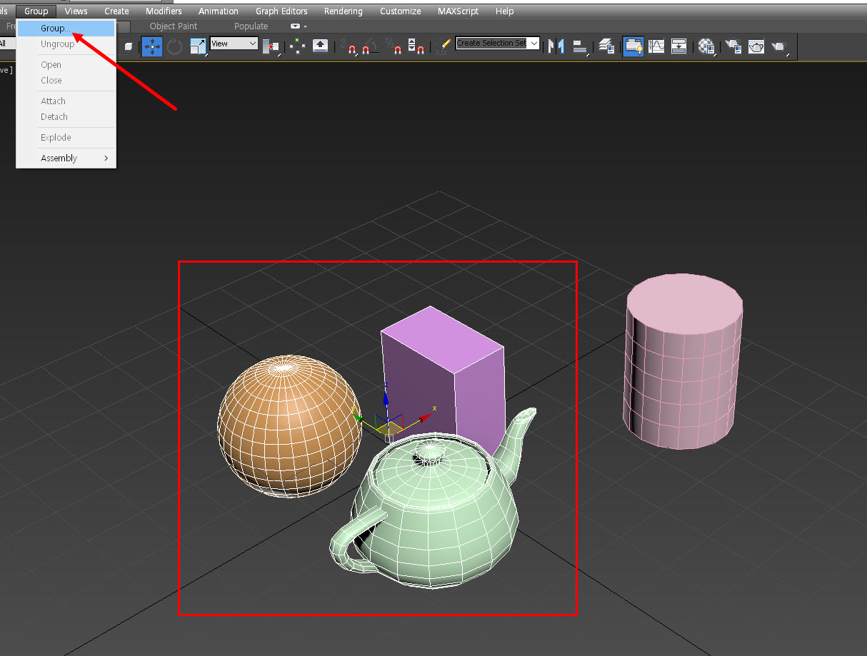 3D맥스에서 그룹 메뉴 사용하기(group, open, close, attach, detach, explode)