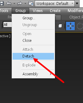 5)특정한 오브젝트를 그룹에서 제외하려면 오브젝트를 선택하고 group 메뉴의 detach를 선택합니다.