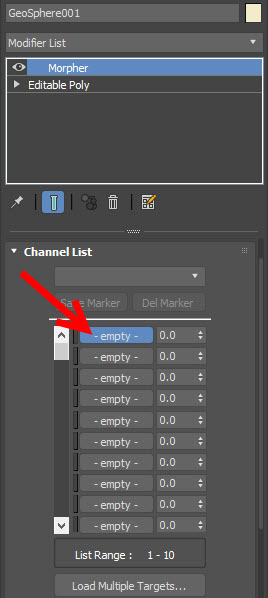 5)morpher 수정자를 추가합니다.