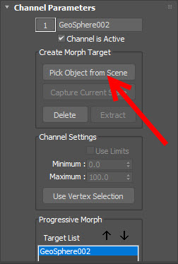 7)pick object from scene을 클릭한후 채널에 추가할 타겟 오브젝트를 선택합니다.