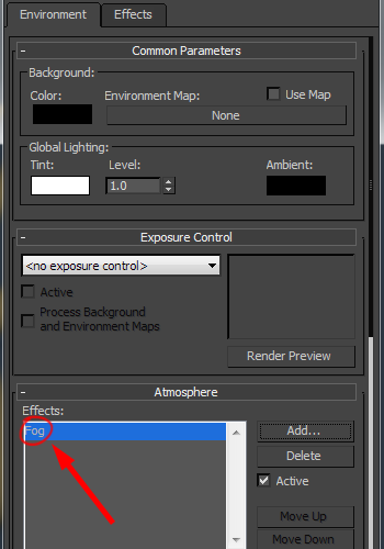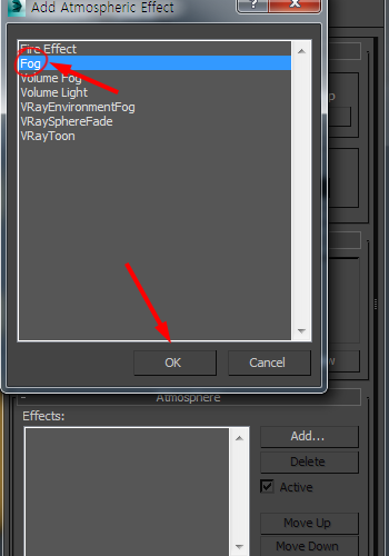 3D맥스에서 environment fog를 이용하여 안개를 표현하는 방법