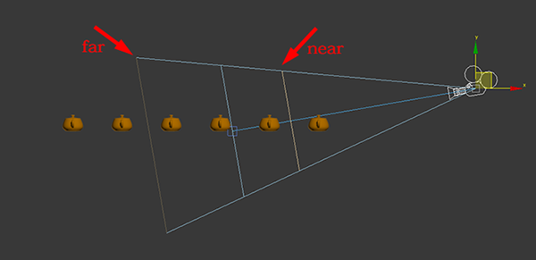 near는 안개의 시작점입니다. 렌더링한 이미지에서 near에서 far 사이 범위의 오브젝트를 확인할수있습니다.