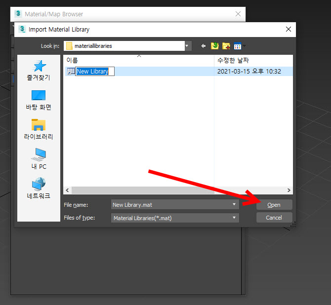 11)저장한 재질 라이브러리를 선택 및 열기합니다.