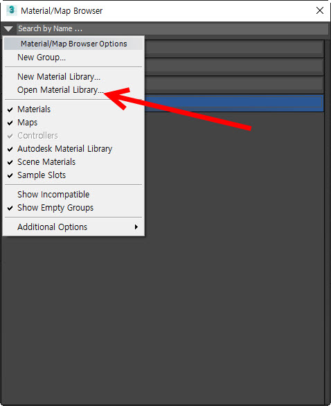 4)material/map browser에서 new material library를 선택합니다.