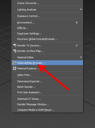 2)상단의 rendering 메뉴에서 material/map browser로 이동합니다.
