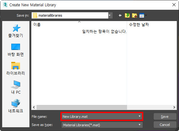 5)새로운 재질 라이브러리를 저장합니다(.mat)
