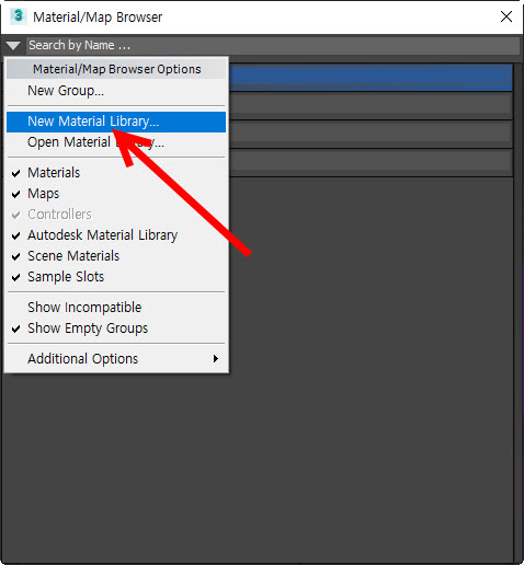 4)material/map browser에서 new material library를 선택합니다.