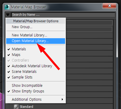 9)open material library를 선택합니다.