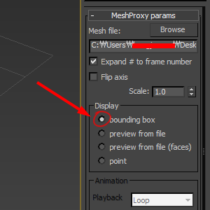 7)브이레이 프록시 오브젝트의 meshproxy params에서 display의 bounding box에 체크하면 모델을 바운딩 박스로 표시합니다.