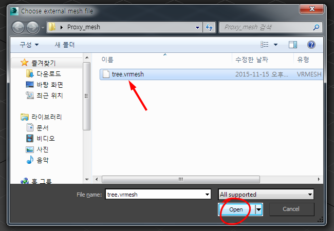 5)브이레이 메시 파일을 선택하고 열기합니다(.vrmesh)