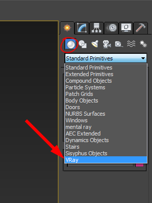 2)create의 geometry에서 VRay를 선택합니다